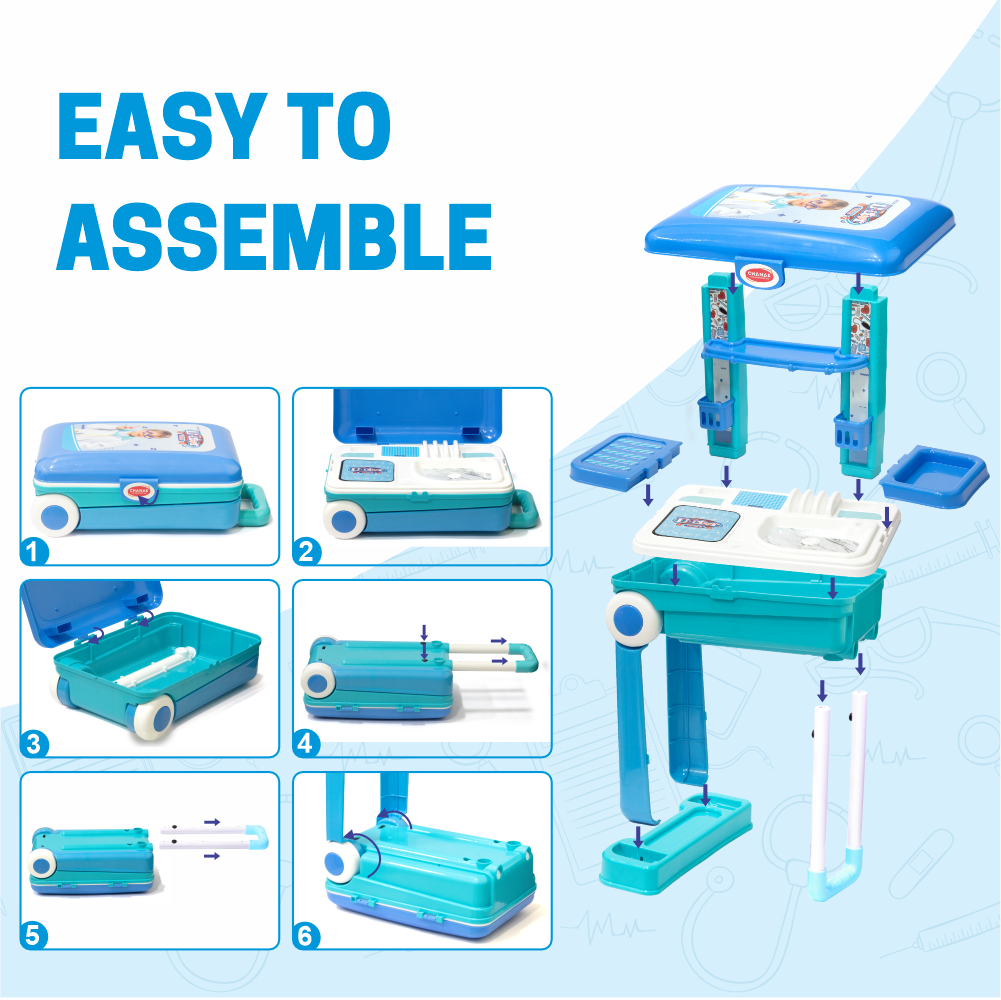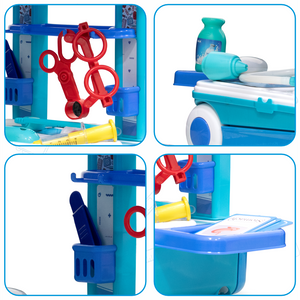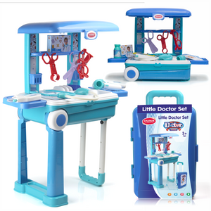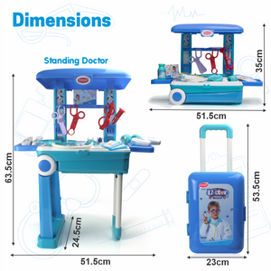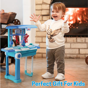 This versatile doctor set toy features a 3-in-1 convertible design, transforming easily into a trolley case, a medical tool table, or a doctor tool bench. The flexible setup allows children to play in different ways while developing creativity, coordination, and organizational skills.
