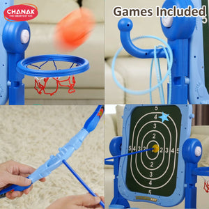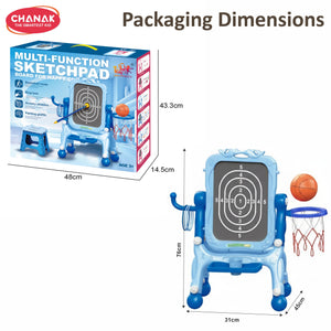 Chanak 4-In-1 Multi-Function Sketchpad & Sports Board Set For Kids | Drawing Easel, Basketball Game, Ring Toss & Archery Set With Accessories | Magnetic Whiteboard Art And Learning Toy 3+ Years