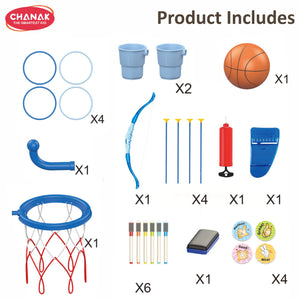 Chanak 4-In-1 Multi-Function Sketchpad & Sports Board Set, A Complete Entertainment And Learning Hub For Kids Aged 3 Years And Above. This Innovative Playset Features A Magnetic Drawing Board, Basketball Hoop, Ring Toss, And Archery Game, Ensuring Hours Of Engaging And Educational Fun. Children Can Freely Draw Or Write On The Erasable Whiteboard, Then Switch To Active Play With The Basketball Or Archery Set For An Exciting Break. The Detachable Trays Keep All Accessories Neatly Organized, Promoting Independence And Tidiness. Crafted From Non-Toxic, Durable Plastic, This Colorful Set Is Safe For Daily Play And Encourages Overall Growth — From Hand-Eye Coordination To Creative Imagination. A Perfect All-In-One Indoor Toy For Both Boys And Girls To Learn, Play, And Grow Through Fun