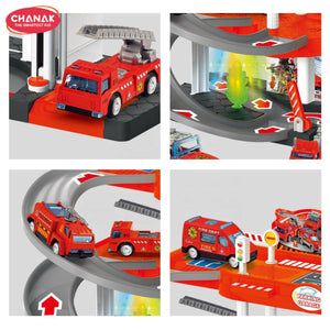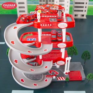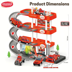 Chanak Alloy Fire Protection 4-Storey Parking Lot Playset | Die-Cast Car Garage Toy With Elevators, Ramps & Fire Station Theme | Educational & Pretend Play Toy For Kids