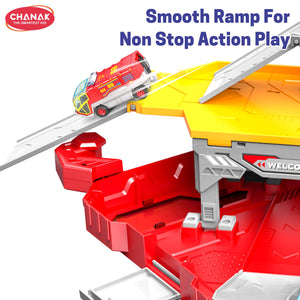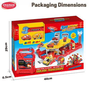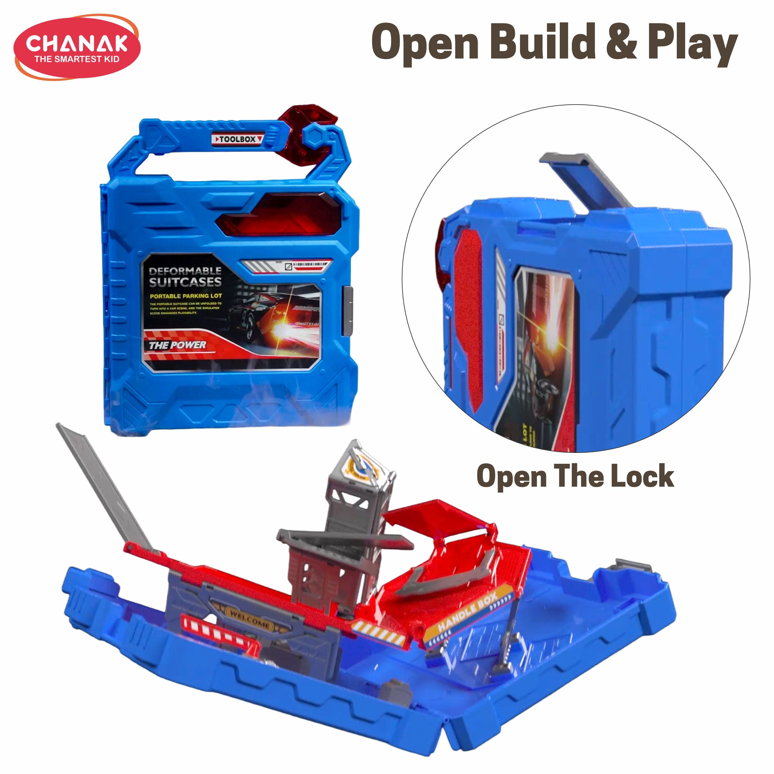 Chanak City Action Diy Racing Team Toolbox Transshape Playset With Lights & Sounds | Foldable Suitcase Garage With Die-Cast Cars, Ramp & Catapult Launcher For Kids 3+ Years