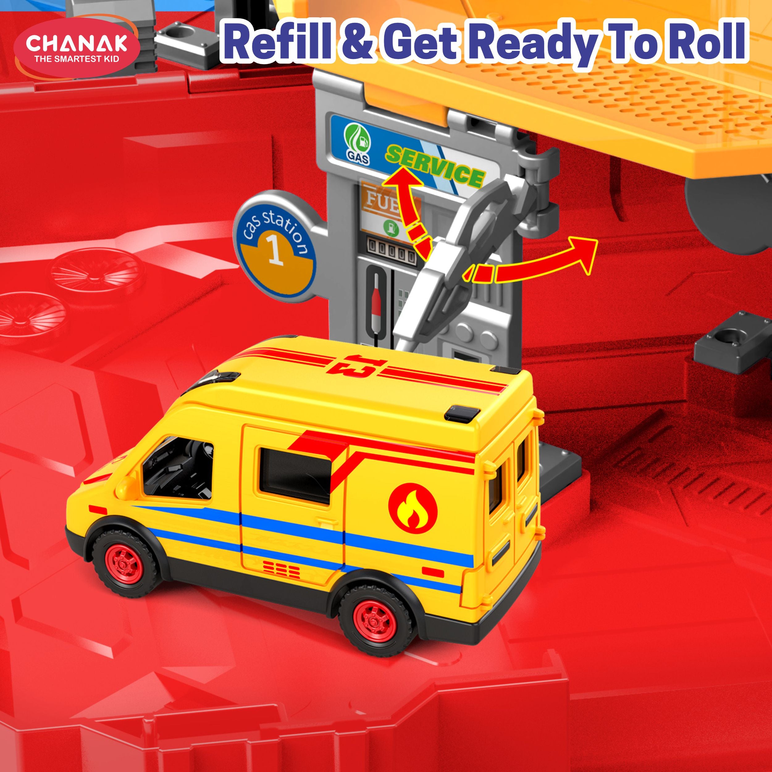 Complete Vehicle Adventure Set – Race, Repair, And Fly : Comes With 2 Die-Cast Cars And 1 Helicopter, Giving Children A Full Rescue And Racing Experience. They Can Race Down Ramps, Launch Vehicles With The Catapult, Refuel At The Gas Station, And Perform Aerial Rescues — All In One Action-Packed Set.