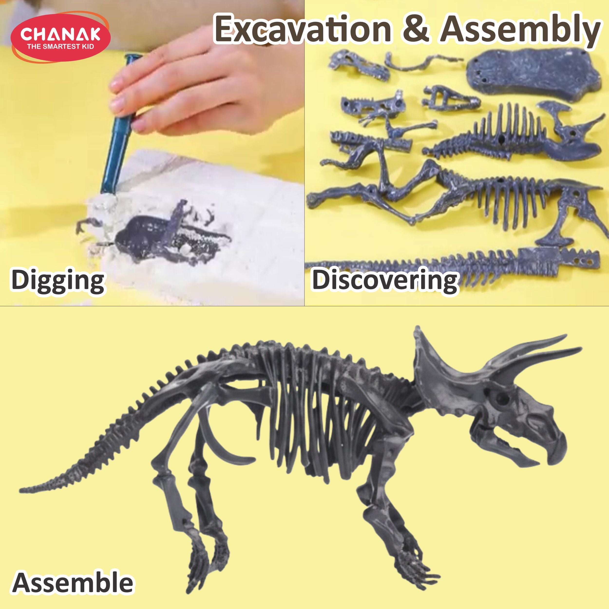 Chanak Dinosaur Skeleton Dig Kit Excavation & Discovery Toy For Kids Age 3+ Fun Steam Learning Fossil Digging Set Educational Archaeology Science Toy