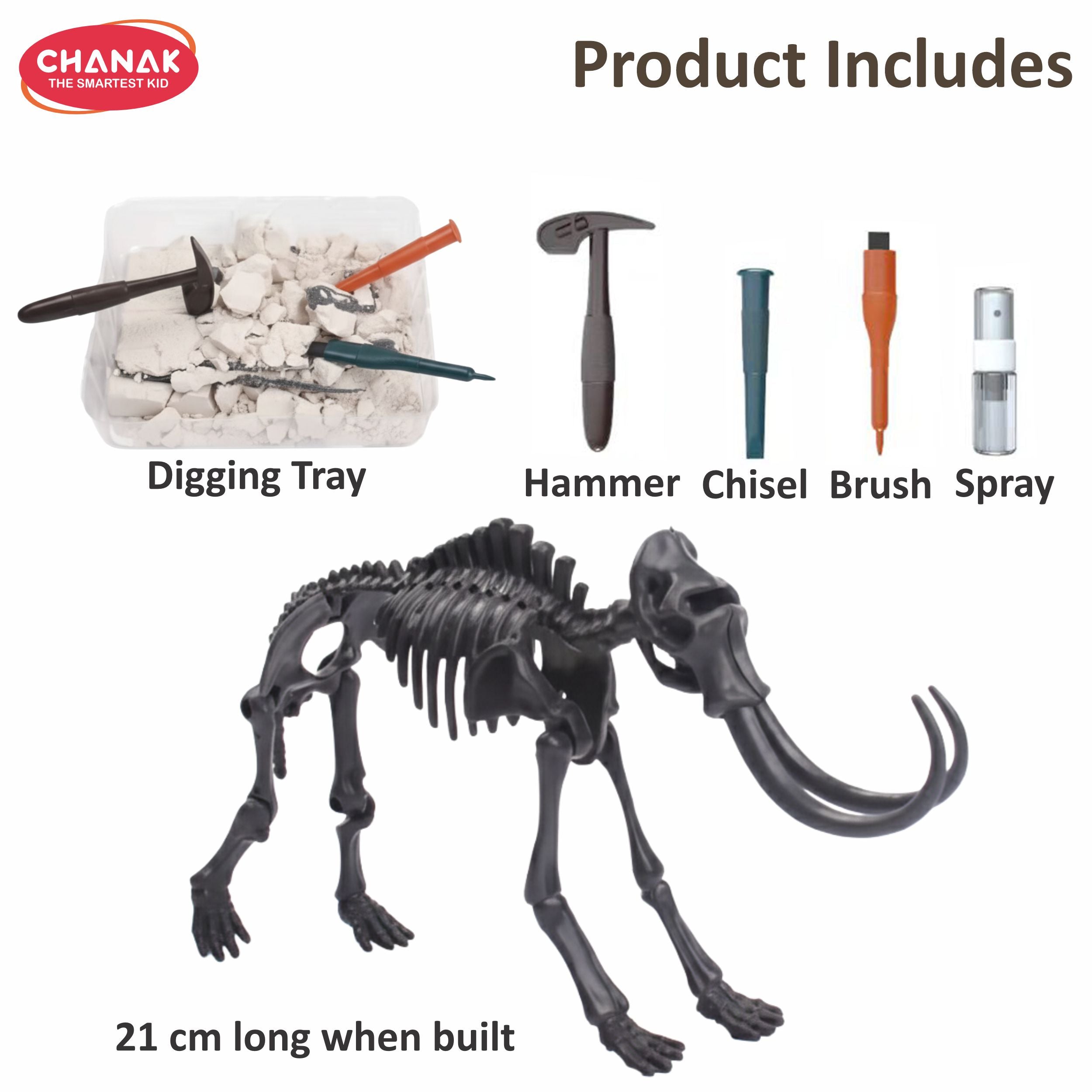Chanak Dinosaur Skeleton Dig Kit Mammoth Edition Excavation Fossil Discovery Toy For Kids Age 3+ Steam Educational Archaeology Kit Fun Learning Science Activity