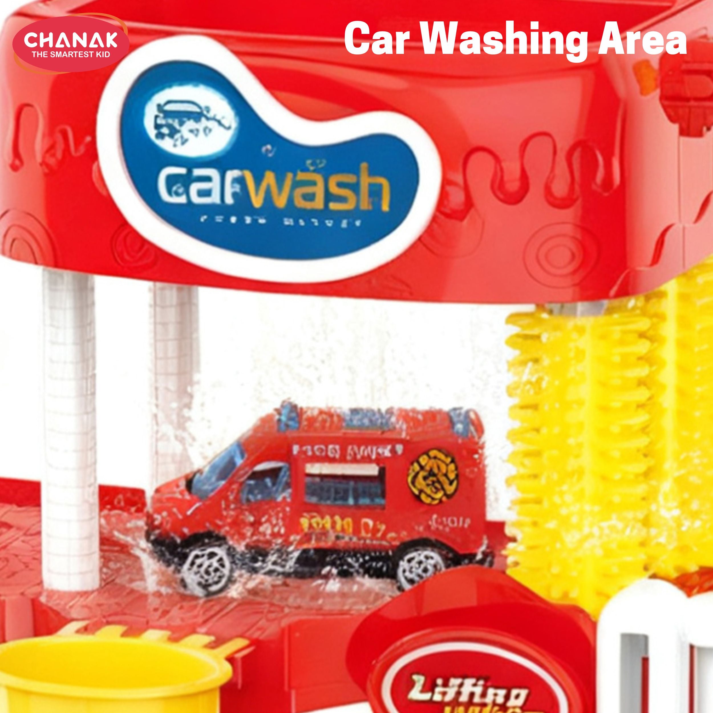 Realistic 2-Layer Car Wash Simulation : Experience Double The Fun With This 2-Layer Sliding Track Car Wash Set That Replicates A Real Car Service Station. Kids Can Lift, Wash, And Race Their Fire Trucks Through Different Zones — From Ramps To Cleaning Tunnels. The Manual Lift Platform Allows Children To Raise Or Lower Vehicles Just Like A Real Mechanic Station, Promoting Interactive, Hands-On Learning.