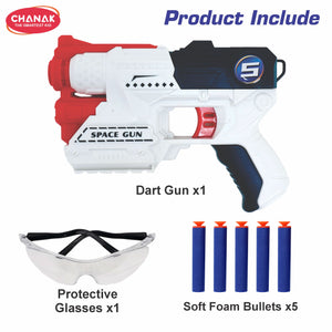 Chanak Power Shoot Space Gun Toy For Kids – Soft Bullet Blaster With 5 Foam Darts, Safety Goggles, 3-In-1 Functionality – Shooting Game Toy For Boys & Girls – Age 6+