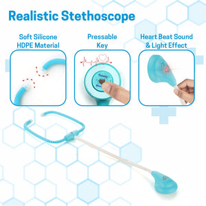 ❤️ Innovative Stethoscope – The highlight of this kit is a realistic stethoscope that lights up and produces a heartbeat sound when pressed, making playtime interactive and fun.