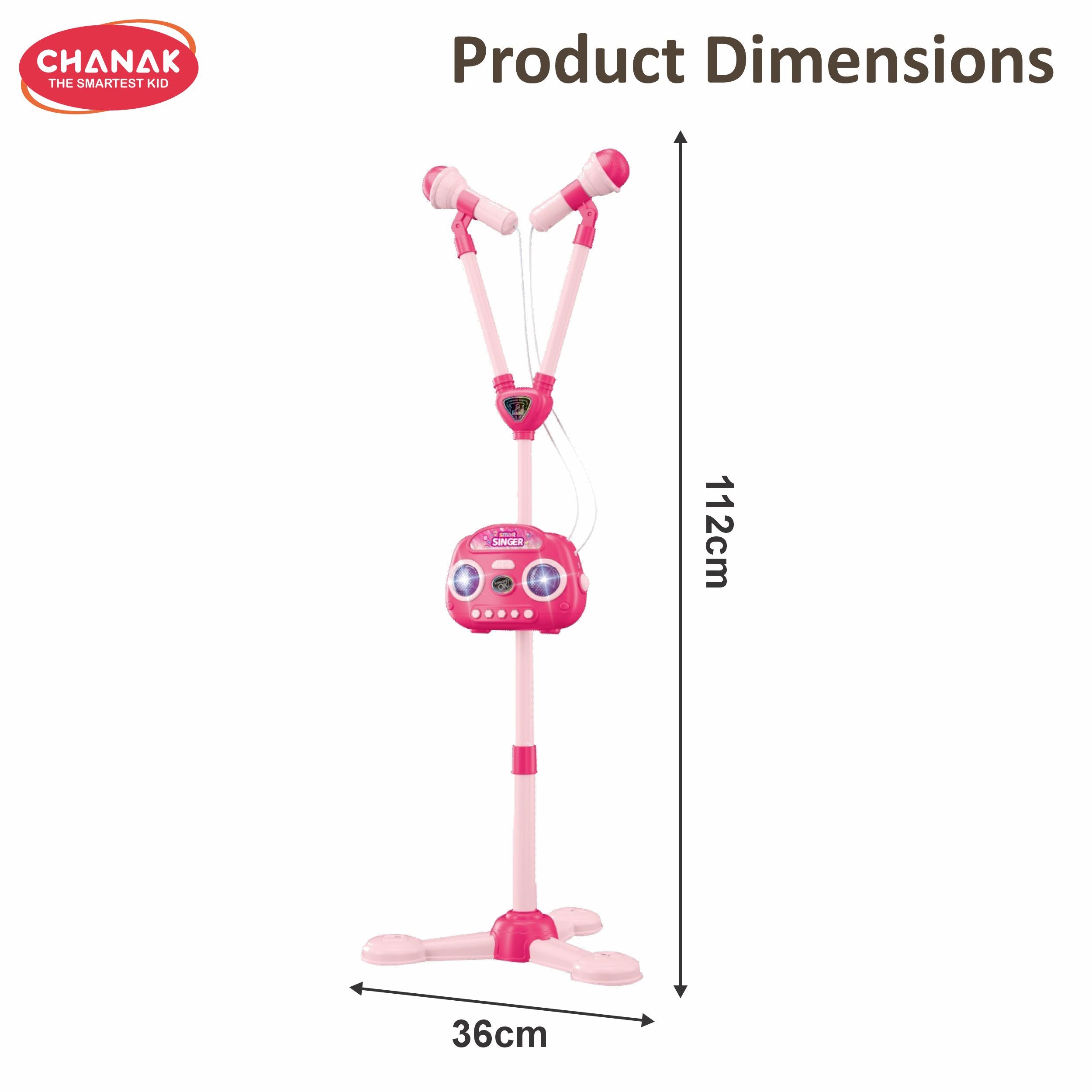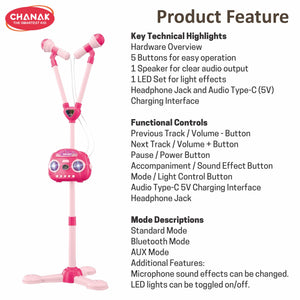 Chanak Smart Singer Karaoke Microphone Set With Dual Mics & Adjustable Stand | Bluetooth Music Speaker With Lights | Rechargeable Singing Toy For Kids