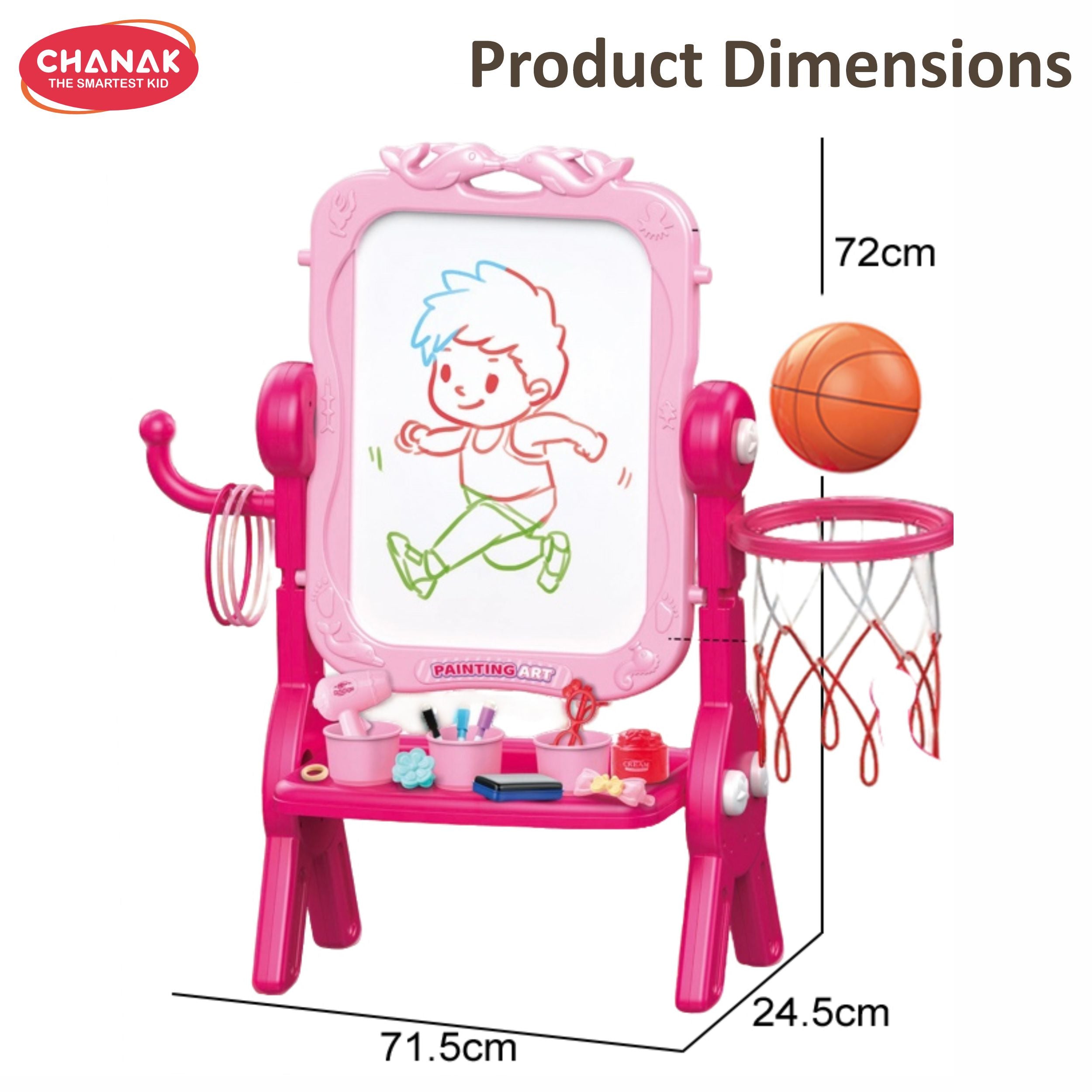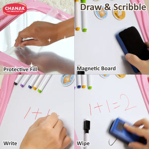 Inspire Your Child’S Creativity And Learning With The Chanak Vertical A-Shaped 4-In-1 Makeup Desk Writing Board, A Smart Combination Of Play And Education. Designed With A Stylish A-Shaped Stand For Better Stability, This Versatile Set Includes A Double-Sided Board (Whiteboard And Chalkboard), A Matching Chair, And A Spacious Storage Tray For All Art Essentials. The Powder Pink Single-Style Design Adds A Modern And Elegant Touch To Any Child’S Room. Built From Durable, Non-Toxic, Bis-Certified Plastic, It Ensures Safety And Long-Lasting Use. Whether Your Little One Is Drawing, Writing, Studying, Or Playing Teacher, This Set Turns Learning Into An Exciting, Hands-On Experience That Sparks Imagination And Confidence Every Day.