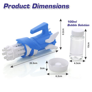 Chanak Gatling bubble gun for kids, 8- hole bubble gun toy with 100ml bubble solution for kids above 3 years, bubble machine for indoor & outdoor play, 100% safe & skin friendly (color as per availability)