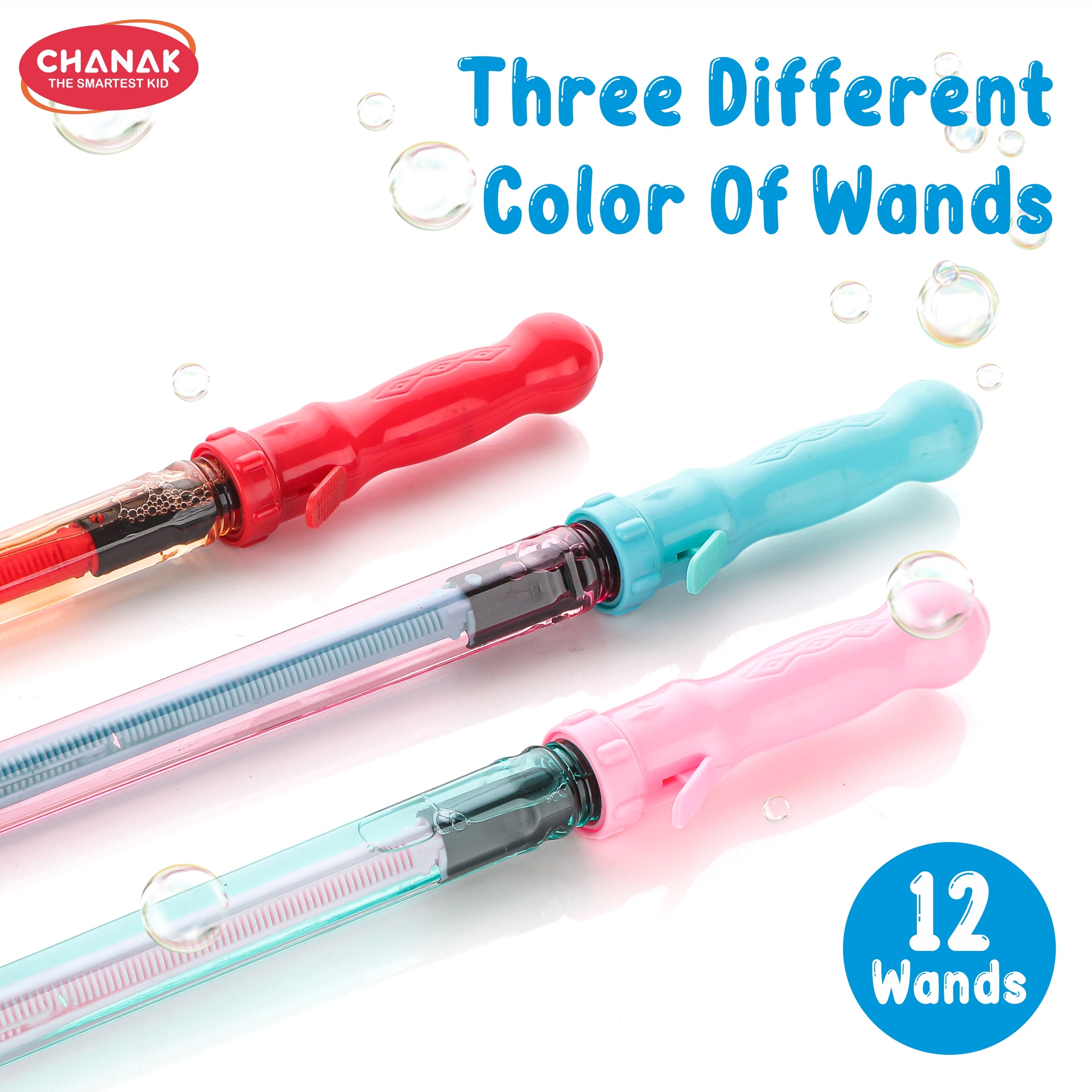 Chanak Giant Bubble Wands, Pack of 12 Bubble Sticks for Kids Above 3 Years, Making Giant Bubbles Toy for Kids, Bubble Sticks for Endless Joy & Fun Bubble Solution, Each Wand 100ml Bubble Solution (Pack of 12)