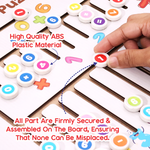INTERACTIVE MATH PUZZLE FOR LOGICAL THINKING - The back side of the board offers an engaging maze puzzle that introduces children to basic arithmetic operations such as addition, subtraction, multiplication, and division. Kids can slide the movable number and symbol pieces to create and solve simple equations, enhancing their problem-solving skills, logical reasoning, and math confidence.